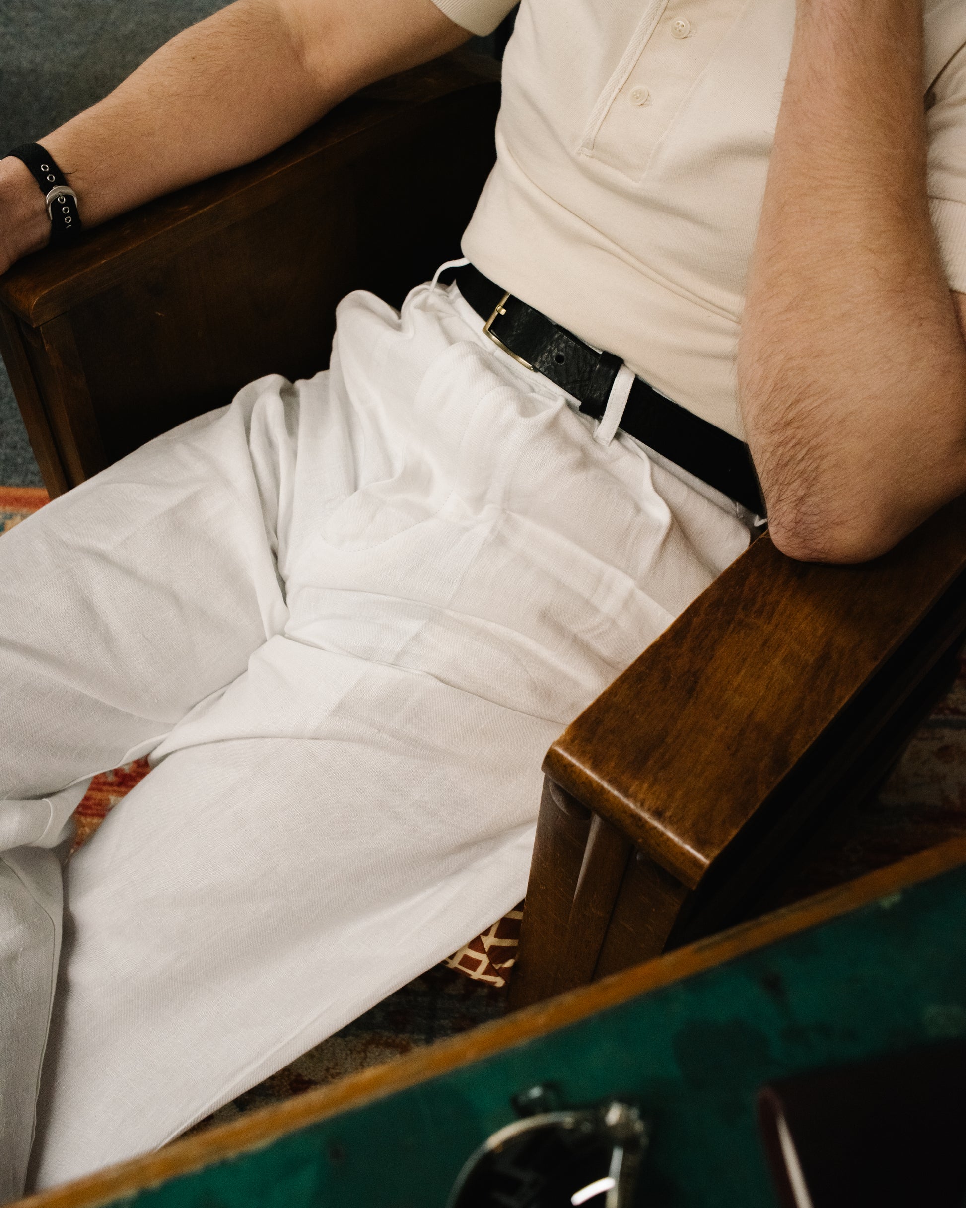 Cut from premium white linen, they are designed to remain breathable and comfortable in warmer conditions while retaining a structured, tailored silhouette.