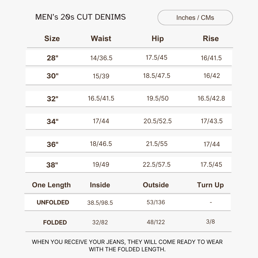 Inkeeping with the original pattern, the leg width is more tapered than our other trouser cuts, finishing with a 6-7 inch width leg.