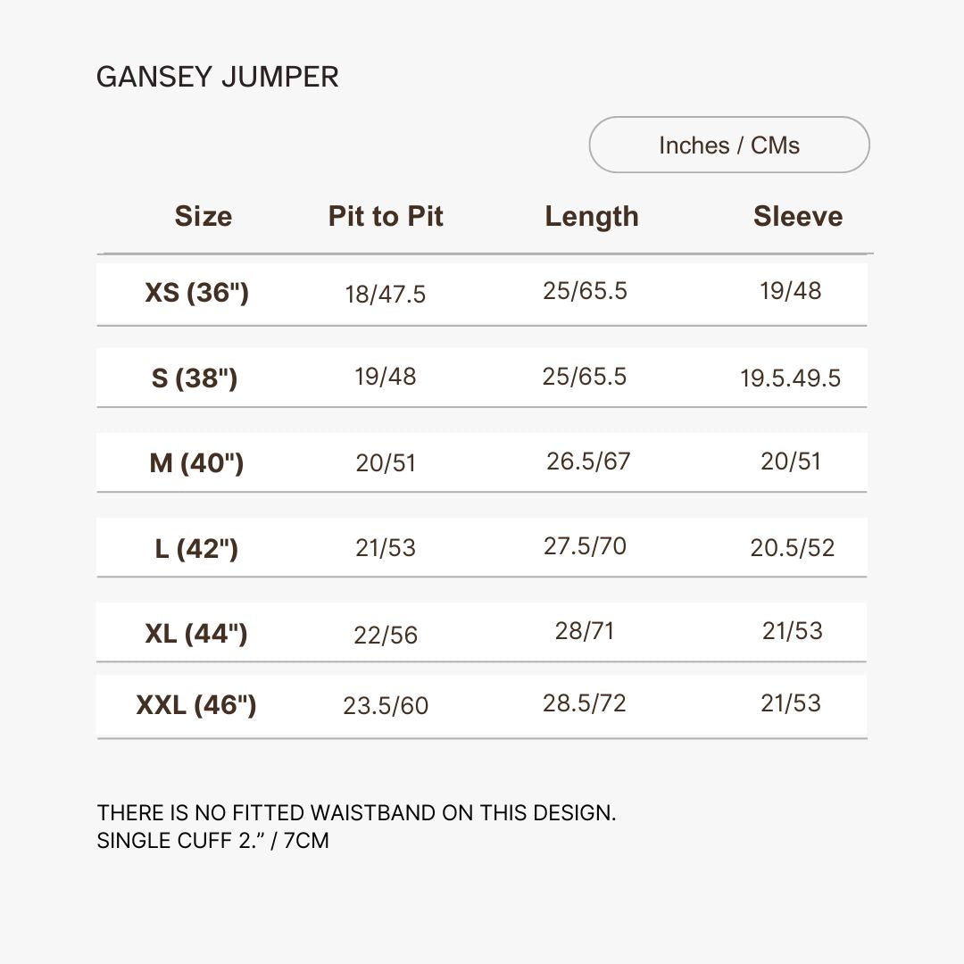 Synonymous with fishing communities along the British coast, this is just one of the types of 'ganseys'. Unique with its drop shoulder and box waist, it is great oversized or tightly fitted.