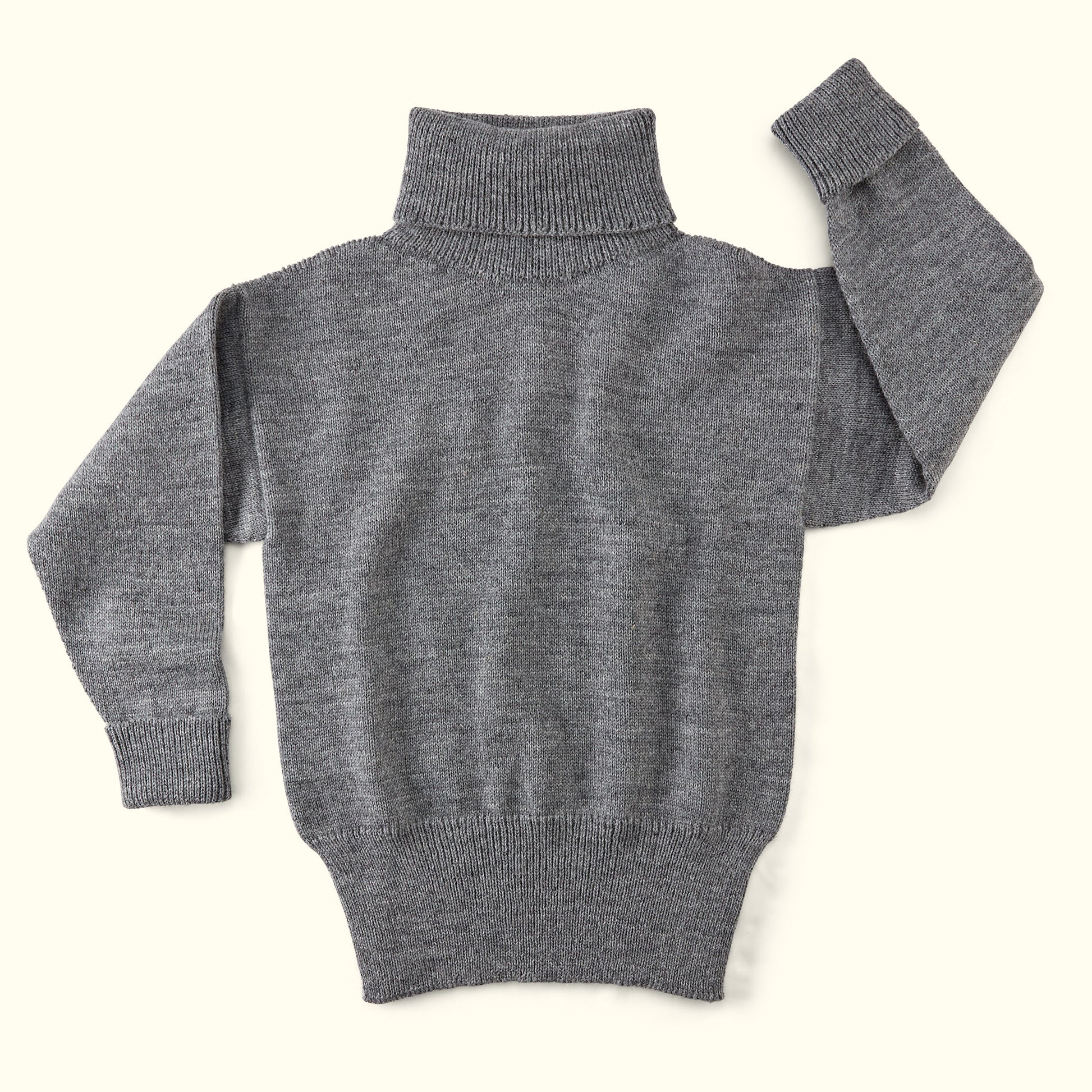 This traditionally designed rollneck has a high waistband, drop shoulders and double cuffs.
