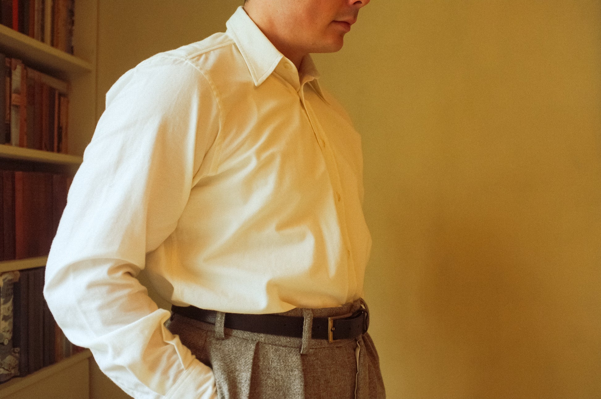 Made from premium white brushed cotton, The Cromwell Shirt has a softly flannelled handle — warm, breathable, and comfortable against the skin. Each shirt will be handmade in England in early 2026, ensuring the highest standards of heritage craftsmanship.